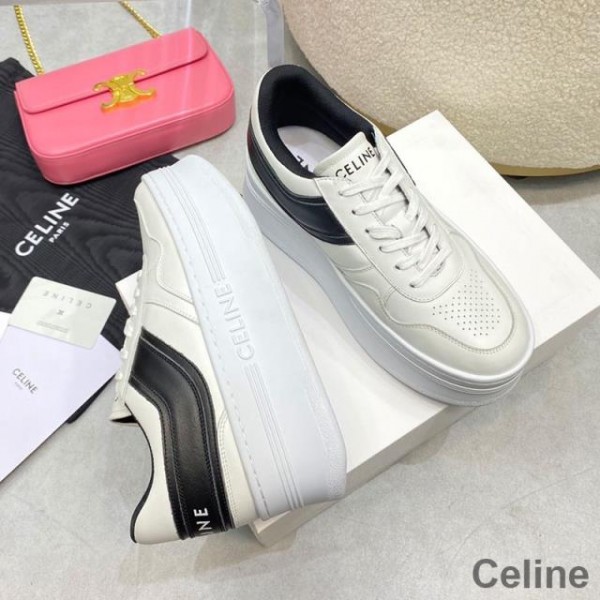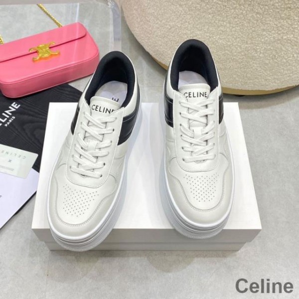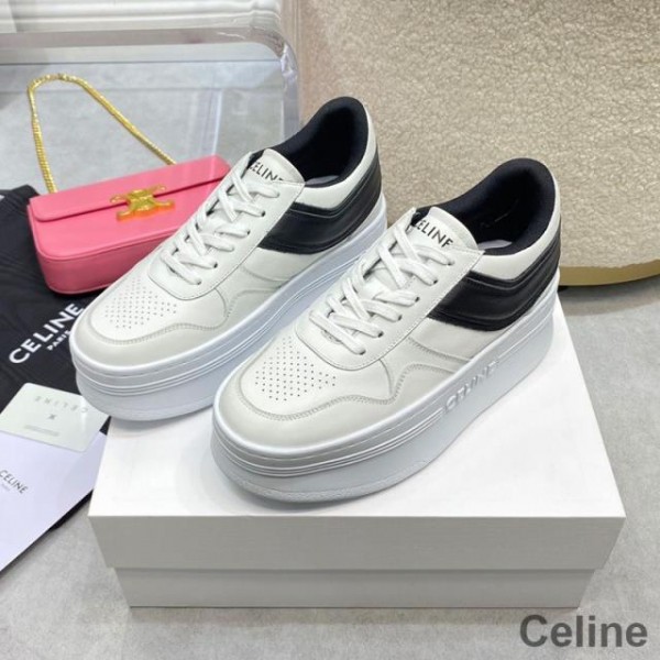 Celine Block Sneakers Women Calfskin with Wedge Outsole White/Black