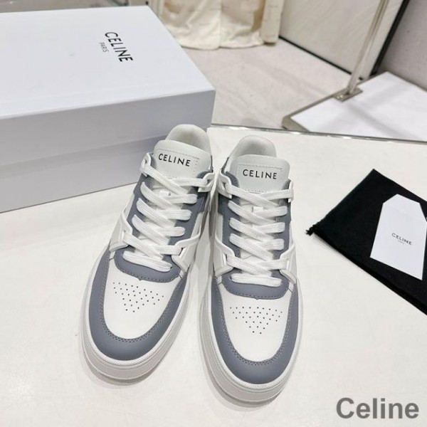 Celine CT-07 Trainer Low Lace-Up Sneakers Unisex Calfskin White/Grey