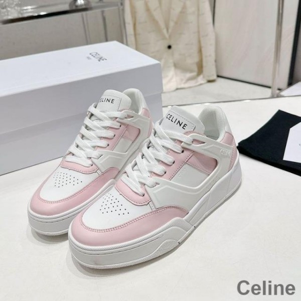 Celine CT-07 Trainer Low Lace-Up Sneakers Unisex Calfskin White/Pink