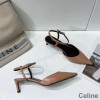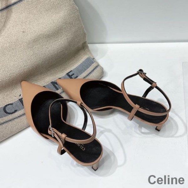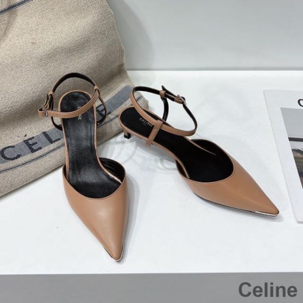 Celine Kitten Slingback Pumps Women Calfskin with Metal Toe Brown