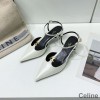 -White Celine Kitten Slingback Pumps.