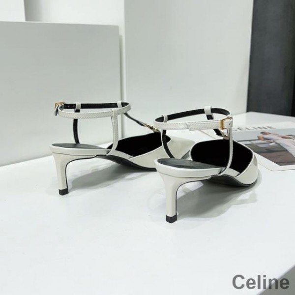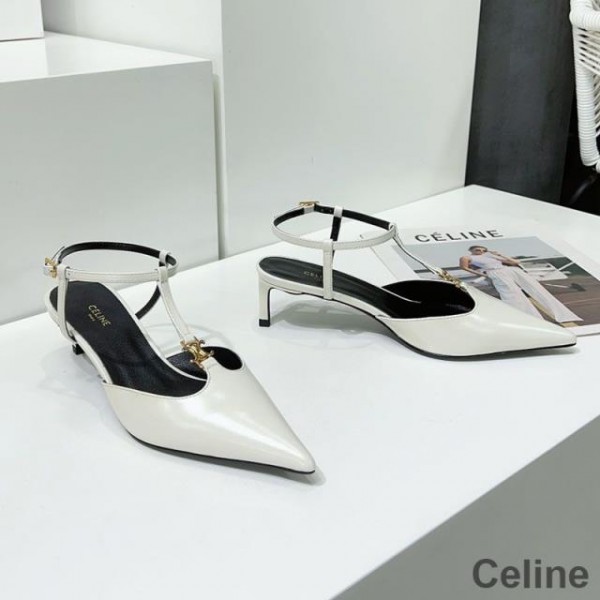 Celine Kitten Slingback Pumps Women Calfskin with Triomphe T-bar Strap White