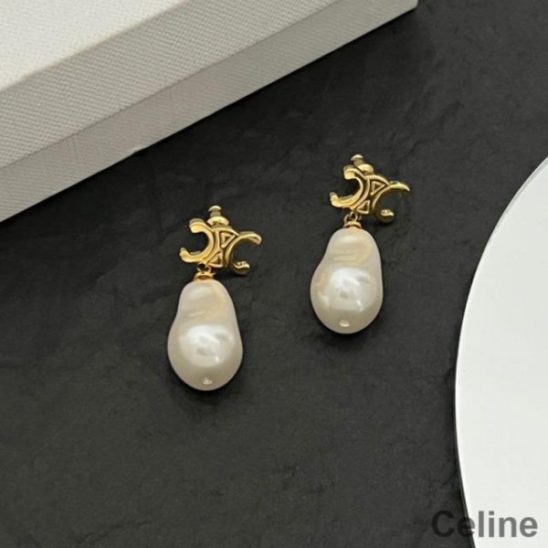 Celine Triomphe Earrings in Brass with Pearls Gold