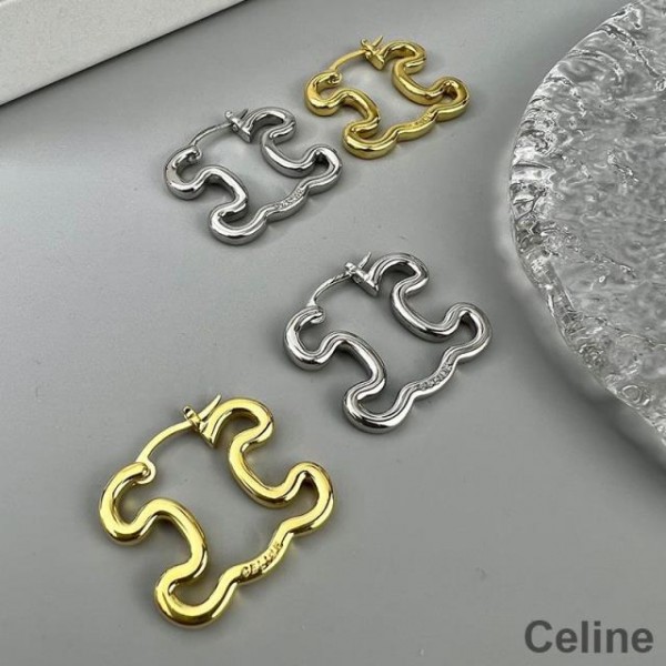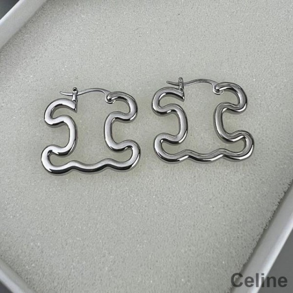 Celine Triomphe Frame Large Earrings in Brass Silver